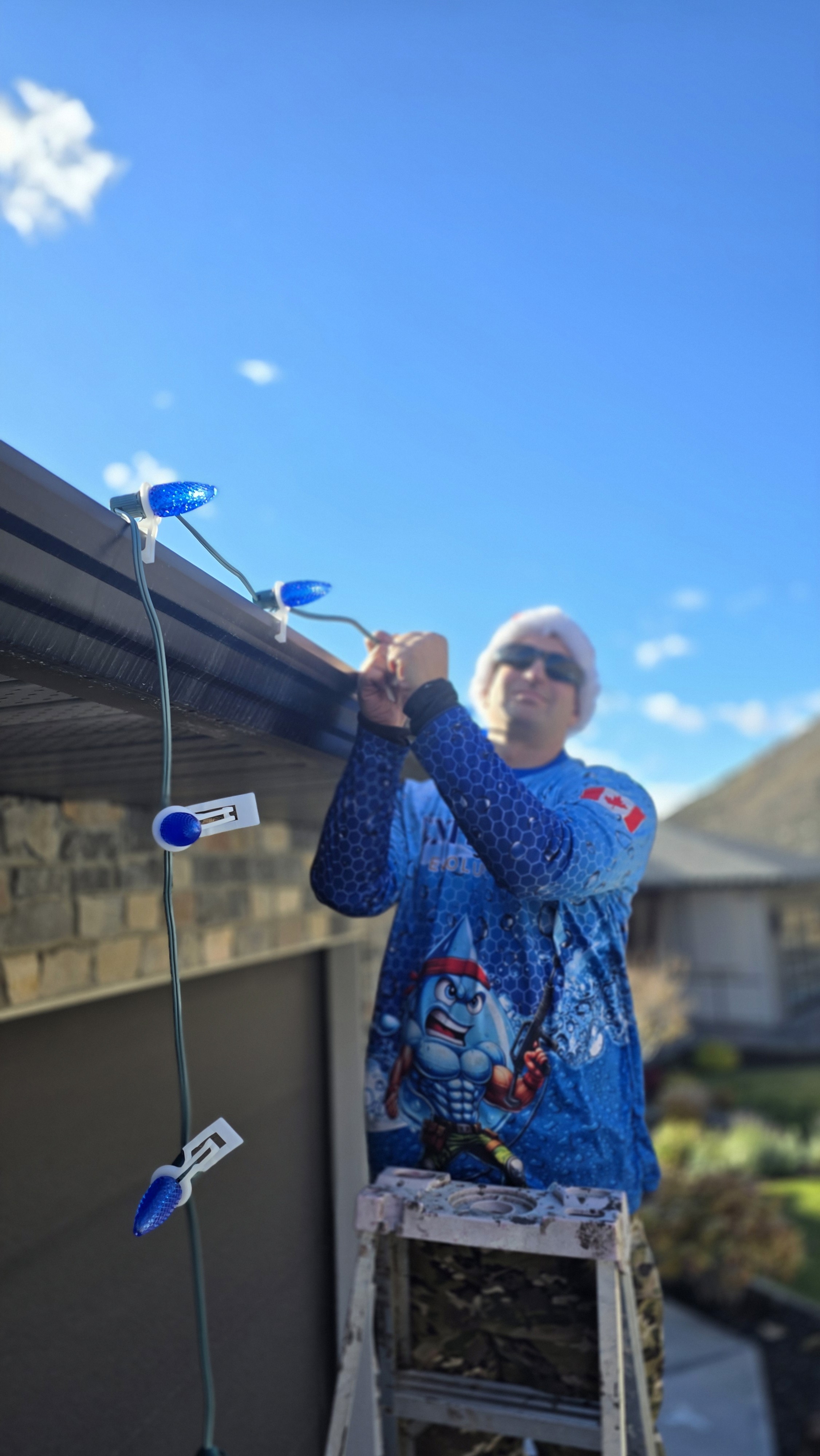 Blue bulbs create a cool, crisp winter look, adding a calm, elegant glow that stands out beautifully against the season